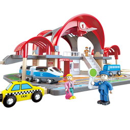Hape德国Hape小火车轨道玩具木质积木拼装拼插套装多功能儿童火车玩具 豪华城市火车站E3725