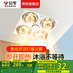 公牛(BULL)灯暖浴霸照明排气一体集成吊顶三合一300x300卫生间浴室4灯泡老式 集成吊顶丨取暖/照明/换气三合一