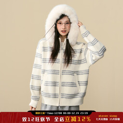 ELEVEN SLEEP秋冬条纹毛衣开衫保暖外套韩系可拆卸毛领长袖上衣女 灰白色 S