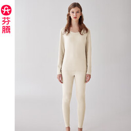 芬腾情侣秋季保暖内衣秋衣秋裤套装女士羊毛蚕丝德绒男冬天打底衫 杏色【单女款】 S 建议:女84-92斤