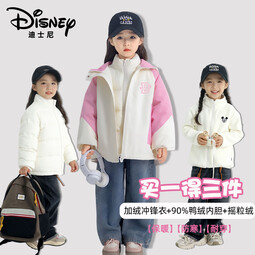 迪士尼儿童秋冬季羽绒服三件套男女童防风保暖连帽休闲外套 粉色 (三件套) 100 (23-30斤)