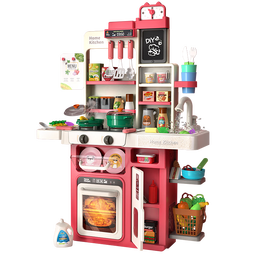Eve Stone SPECIAL GIRL LIKE YOU圣诞礼物儿童节3-6岁厨房玩具1到3过家家做饭玩具煮饭仿真小厨房 83cm单台面声光喷雾水循环红 男女孩生日礼物煮饭玩具套装6-12三岁5