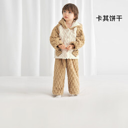 欧孕(OUYUN)珊瑚绒儿童睡衣秋冬新款男童女童宝宝保暖家居服加厚套装 卡其饼干 90cm 推荐身高85-95cm
