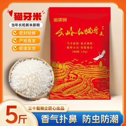 金饭碗猫牙米长粒香米5斤新米真空包装低脂新产软糯香甜大米工厂直发 云岭红猫牙2.5KG