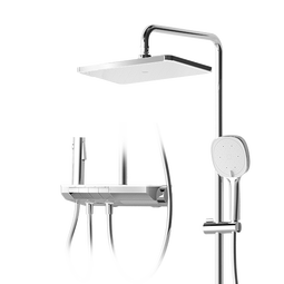 320mm加大顶喷,双重除垢技术,三模式手持花洒。 恒洁 HMF938-333 淋浴花洒套装,钢琴按键,一键一控,便捷易操作。宽敞大平台,可置物易清洁,钢化玻璃面板,防刮耐磨易清洁。水路材质通过5项国际食品级认证,铅、汞含量0%,耐用且「安全」。外壳与内芯分离,空气隔热安全防烫。顶喷内容顶针结构可应用重力原理,关闭时自动清除水垢。强劲冲力喷枪,密集出水,横扫浴室污垢。主体材质为ABS+PPA...