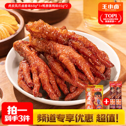 王小卤虎皮凤爪 鸡爪 卤鸡爪 搭配手撕鸭脖 耐啃 鸭脖 休闲 虎皮卤香味68g*1+鸭脖黑鸭味*2