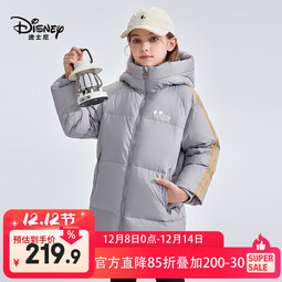 迪士尼(Disney)Disney/迪士尼女童羽绒服2025冬季新款儿童中长款面包服连帽外套 灰色 【高绒防风保暖90白鸭绒】 均码 110cm 充绒量约89g
