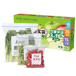 美丽雅自封袋大中小共90只双链封口厨房冰箱冷冻收纳袋食品级保鲜加厚