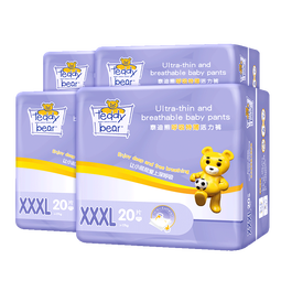泰迪熊(Teddy Bear)呼吸特薄拉拉裤 超薄透气干爽婴儿尿不湿成长裤 XXXL20片*4包(建议34-42斤)