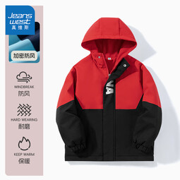 真维斯童装儿童棉服2025新款女童保暖棉衣中大童秋冬款加厚上衣男童冲锋外套 【撞色冲锋棉服】红/J纯色 110