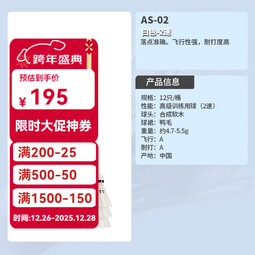 YONEX尤尼克斯羽毛球12只装耐打王AS02精选鸭毛,专为专业训练与比赛设计。采用高品质精选鸭毛,保证韧性和稳定性,使球速均匀、飞行轨迹精准。2速设计适应不同环境,无论室内外均表现出色。每筒含12只,满足长时间训练需求。商品优势在于卓越的耐打性能和优异控制感,减少断羽更换频率,提高训练效率。严苛工艺确保重量一致、平衡佳,有助提升击球手感和竞技水平。尤尼克斯品牌保障专业体验。购买建议:适合中高级及...