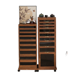 柚公馆新款胡桃色实木无贴皮牙科柜文玩珠宝茶具茶杯收纳柜落地茶水柜 胡桃色小号
