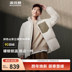 波司登(BOSIDENG)25年新款羽绒服男款时尚休闲短款立领防风百搭休闲加厚保暖外套 白沙米|7A75 XS 165/88A 体重约120斤以内