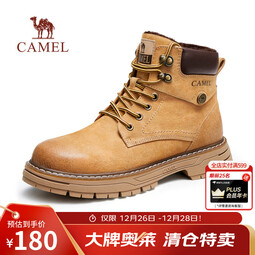 骆驼(CAMEL)男鞋 英伦高帮工装靴男增高户外透气耐磨沙漠靴会员 G13W076021R加绒沙漠黄/咖啡 38