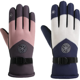 秋冬季骑行男女抓绒防风保暖触屏手套户外登山滑雪骑车拉链手套 TJ-2女滑雪圆标灰粉 均码 1双