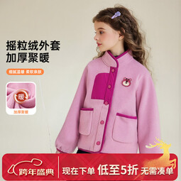 迪士尼(Disney)儿童摇粒绒外套2025秋冬款女童撞色上衣加厚保暖中大童童装 粉色 110