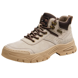 骆驼(CAMEL)男鞋英伦高帮工装靴,采用优质耐磨皮革与加绒内里设计,兼具时尚与实用。沙漠黄和咖啡色经典百搭,适合多种户外及日常场景。增高鞋底提升身形比例,同时增强脚部支撑和舒适度。透气材质有效排汗防臭,长时间行走依然干爽。橡胶大底坚固耐磨,抓地力强,应对复杂路况无忧。这款工装靴结合英伦风格与功能性,加绒内衬为秋冬季节提供温暖保护且保持灵活。不论城市通勤还是户外探险,都能展现稳健步伐。建议根据平时...
