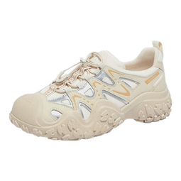 骆驼(CAMEL)登山丑萌鞋女新款拼色丑萌鞋户外徒步鞋女休闲运动鞋 L24S076620米/银/黄 35