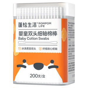 蓬松生活婴童双轴细头棉棒200支婴儿棉签掏耳朵宝宝小头挖鼻涕