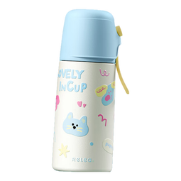 物生物儿童保温杯女士高颜值吸管水杯316L不锈钢大容量学生上学圣诞礼物 薄荷粉蓝【一盖双饮】380ml