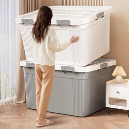 纳份爱收纳箱采用加厚塑料材质,尺寸49*34*27.5cm,容量大且坚固耐用,适合存放衣服、被子、玩具等。象牙白设计简洁大方,配备4个顺滑万向轮和4扣密封盖,方便移动且防尘防潮,有效保护物品整洁安全。加厚结构提升承重能力,不易变形,经久耐用。商品优势在于优质材料与精细工艺结合,实现高强度与轻便性平衡;四轮设计提升搬运便利,无需费力提拿;密封扣紧贴箱体边缘,有效阻隔灰尘湿气;透明侧面便于快速识别内部...