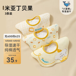 贝肽斯婴儿口水巾新生儿宝宝围嘴纯棉防吐奶防水幼儿园饭兜围兜 米亚丁贝果【防水*导湿速干】3条装
