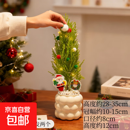 小香松圣诞树桌面摆件耐寒易养四季常青礼物好物 圣诞香松+三层泡泡树脂吸水盆+灯珠配饰