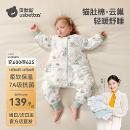 贝肽斯睡袋婴儿春秋冬季儿童宝宝3-6岁纯棉分腿式防踢被保暖惊跳连体衣 森趣牧歌【春秋双层 20-26°C】猫肚棉 S码 建议身高60-85cm建议0.6-1.3岁