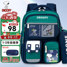 史努比(SNOOPY)小学生书包轻便儿童护脊减负双肩包 一到三年级 宝蓝绿小号