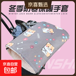 【加绒加厚】2025新款电动车挡风冬季手把套防水防寒保暖手套 招财狗灰色【加厚加绒】一对装