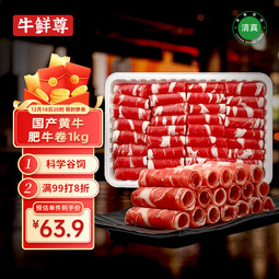 牛鲜尊【PLUS补贴爆款】国产黄牛牛肉卷2斤 原切谷饲肥牛卷涮火锅食材