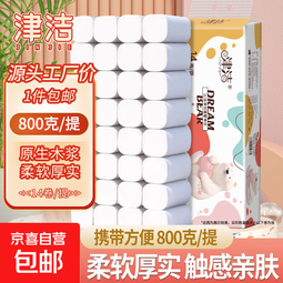 津洁 无芯卷纸【800g/提】五层加厚大卷卷筒纸实芯卷纸家用纸巾 5层 800g*14卷 家用大卷1提装