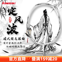 川崎定风波羽毛球拍极光7全碳素超轻5u国风进攻耐打单拍专业训练比赛 定风波-墨黑-白色线 单拍 22-23磅(小朋友、女生适用)