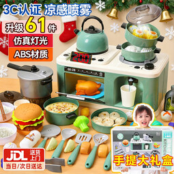 EagleStone圣诞礼物儿童节厨房玩具3-6岁做饭玩具过家家厨房2岁女孩玩具仿真 4合1仿真厨房 声光喷雾61件套绿 1到3岁男孩女孩生日礼物小厨房煮饭玩具大号