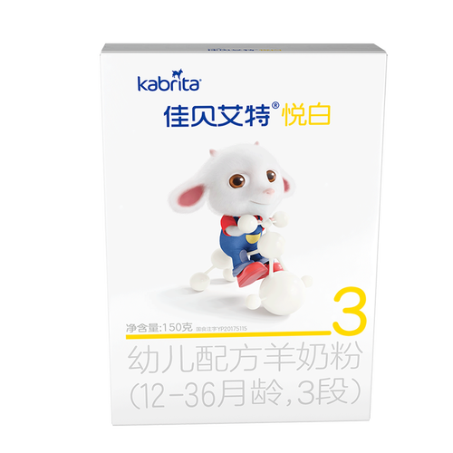 Kabrita品牌创建于1897年,是一个拥有百年历史的老字号品牌,旗下主要的产品有新鲜羊奶、羊酸奶、羊乳酪、婴幼儿配方羊奶粉、妈妈羊奶粉,是较早推出婴幼儿羊奶粉的品牌。这款悦白系列奶粉采用纯羊乳蛋白配方,未添加牛乳蛋白,羊奶脂肪球颗粒更细小,相比牛奶,羊奶更容易消化吸收。富含OPO结构脂和益生菌益生元组合,调节肠道功能,降低上火便秘几率。添加DHA+ARA帮助宝宝大脑和视力更好的发育,采用先进的脱膻技术,保证奶源纯正口感,不添加蔗糖、麦芽糊精等,不会造成宝宝龋齿等口腔问题。
