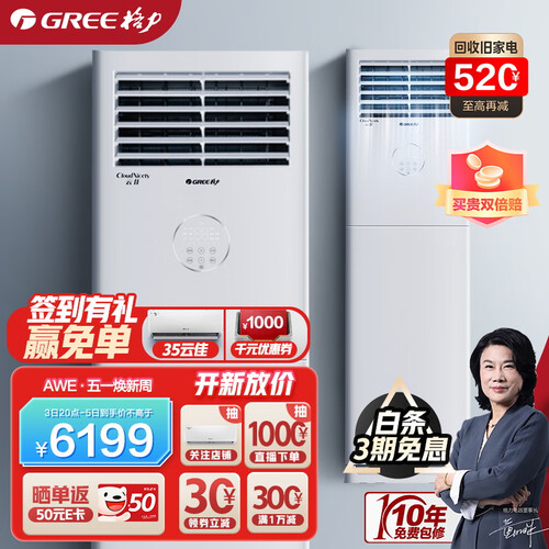 格力(GREE)空调 云佳 新能效 变频冷暖 高温自清洁 大风量 除湿 客厅家用立式柜机 3匹 三级能效 云佳方柜