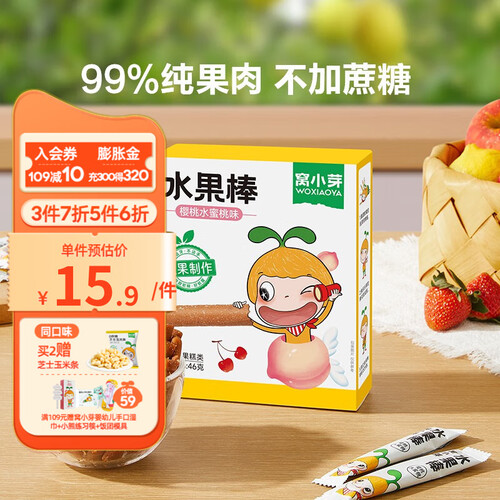 窝小芽 宝宝水果棒 草莓香蕉味 46g,原果原浆制成,不额外添加蔗糖。99%纯果肉制作,原果原浆,不加其他配料,保留水果本真滋味和营养。