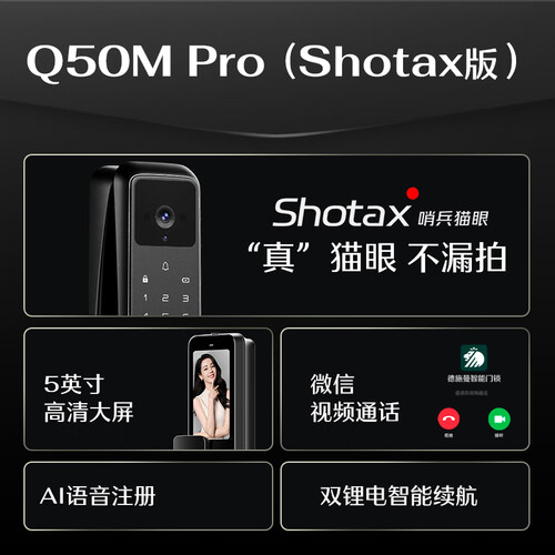 德施曼(DESMAN)智能门锁指纹密码可视大屏哨兵猫眼锁麒麟Q50MPro(Shotax版) 高端黑