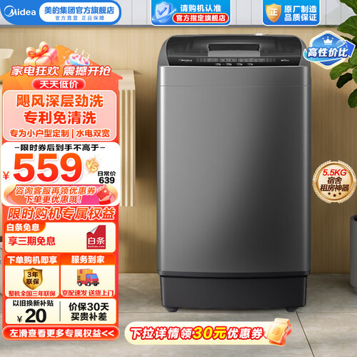 美的(Midea)波轮洗衣机全自动 5.5公斤迷你洗衣机小型省空间 宿舍租房神器 内桶专利免清洗 以旧换新 MB55V33E