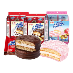 盼盼梅尼耶巧克力味·派代餐办公室早餐面包休闲女生零食糕点夹心蛋糕 巧克力味*2袋+草莓味*1袋 共30枚