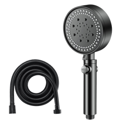 IVORPO【德国】增压淋浴花洒喷头全套装强劲家用多功能洗澡手持莲蓬头 五档黑色花洒+1.5米防爆软管 【强劲增压丨密集大出水】