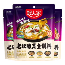 好人家0添加老坛酸菜鱼调料 酸菜鱼调料220g*3袋【鱼调料】