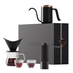 MAVO【中秋礼品】手冲咖啡壶套装礼盒,包含手冲壶、磨豆机、分享壶和滤杯等组件。2号咖啡礼盒2.0采用曜岩黑设计,外观时尚大气。优势:多功能性和高品质制造。玻璃手冲壶耐高温易清洁;可调节研磨度的磨豆机保留原味;分享壶方便实用。购买建议:寻找中秋礼物或提升生活品质的绝佳选择。适合自用或送亲友,带来愉悦体验。