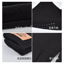 匹克冬季保暖手套防寒针织毛线手套户外骑行电动车防滑可触屏棉手套黑