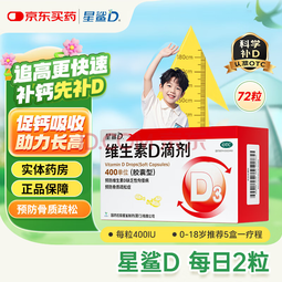 商品介绍:[星鲨]维生素D滴剂含400IU维生素D,每盒72粒,3盒套装。促进钙磷吸收,支持骨骼健康和免疫系统。商品优势:1. 高纯度:安全原料制成。2. 方便易用:滴剂形式,调节剂量方便。3. 多重功效:提升心血管健康、改善情绪等。购买建议:按医嘱服用适量。长期缺阳光或特殊人群需额外补充。注意保质期及存储条件选购合适规格包装。