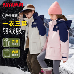 鸭鸭儿童羽绒服男女童三合一短款户外防风一衣三穿冬季外套WJ 粉色 120