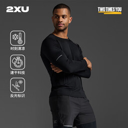 2XU Aero系列长袖背部网状透气速干衣男轻薄户外健身跑步运动上衣女 黑/银反光 (男) XS