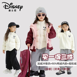 迪士尼秋冬儿童加绒加厚羽绒服三件套保暖防风男女童休闲外套 粉色 (三件套) 100 (23-30斤)