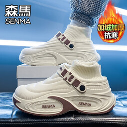森馬棉拖鞋男冬季2025新款外穿防滑防水加绒保暖棉鞋居家厚底包跟拖鞋 米色 38-39