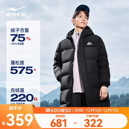 鸿星尔克驭光科技|羽绒服男秋冬新款长款保暖防泼水防风户外运动羽绒外套 正黑 M